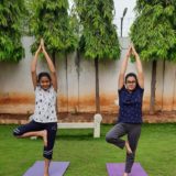 International Yoga day Celebration 2020 – Yoga at home and Yoga with family, reflecting the need to maintain social distancing.