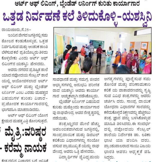 Navodaya Central School Raichur Hosts Insightful Workshop on “Art of Living” and “Blended Learning” Raichur, September 23, 2023 Navodaya Central School of Raichur organized a thought-provoking workshop on September 23, 2023, delving into two significant topics, “Art of Living” and “Blended Learning.” The workshop was led by accomplished speakers, Yeshaswini and Raghvendra, and proved to...