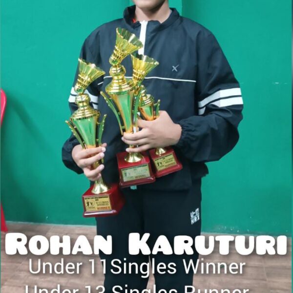 ROHAN KARUTURI, grade-4 of NCS winners U-11 boys doubles at PSB state open championship tournament Bangalore